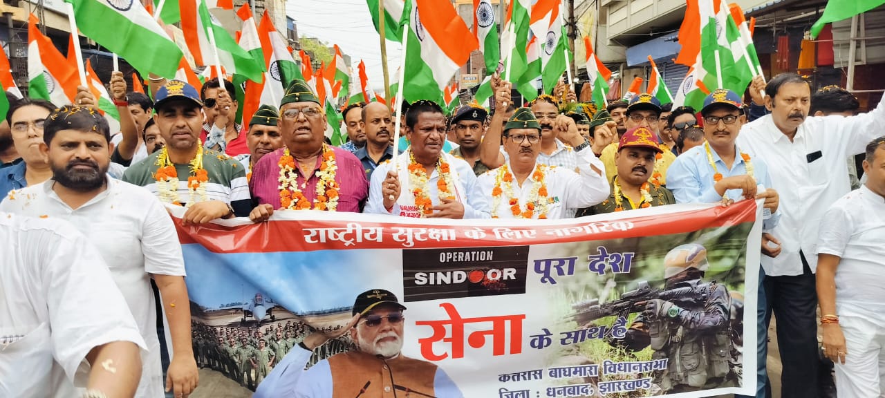 कतरास में सांसद ढुलू महतो एवं विधायक शत्रुघ्न महतो के नेतृत्व में निकली तिरंगा यात्रा, गूंजे ‘सैनिक जिंदाबाद’ और ‘हिंदुस्तान जिंदाबाद’ के नारे