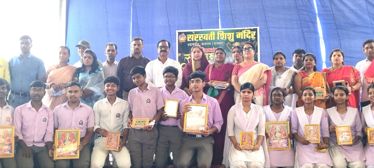धनबाद ( कतरास ) सरस्वती शिशु मंदिर श्यामडीह में सोमवार को सम्मान समारोह का भव्य आयोजन किया गया। जिसमें विद्यालय के मेधावी छात्र छात्राओं को सीबीएसई बोर्ड परीक्षा में उनकी शैक्षणिक उपलब्धियों के लिए सम्मानित किया गया। विद्यालय के प्राचार्य अभिमन्यु कुमार ने अभिभावक बंधुओं का स्वागत करते हुए विद्यालय की उपलब्धियों पर प्रकाश डाला। मालूम हो कि विद्यालय का सीबीएसई. परीक्षा परिणाम शत प्रतिशत रहा। कक्षा दशम के भैया अनुराग कुमार ने 97 प्रतिशत अंक लाकर विद्यालय का नाम रोशन किया तो वहीं द्वादश के विज्ञान संकाय के भैया केशव सिन्हा ने 94 प्रतिशत अंक लाकर विद्यालय का गौरव बढ़ाया। वाणिज्य संकाय की बहन समृधि गुप्ता ने 97.40 अंक लाकर धनबाद जिले की द्वितीय तथा पूरे झारखण्ड में षष्ठ स्थान लाकर अपने माता-पिता, गुरु एवं विद्यालय का नाम रौशन किया। दशम एवं द्वादश परीक्षा में विद्यालय से लगभग 400 बच्चे सम्मिलित हुए। जिनमें लगभग 50 बच्चों का परीक्षा परिणाम 85 प्रतिशत से 97..40 प्रतिशत तक रहा। प्रधानाचार्य अभिमन्यु कुमार उप प्रधानाचार्य श्रेया सरकार एवं समस्त आचार्यों ने इन प्रतिभाशाली 50 बच्चों के अभिभावकों को अंग वस्त्र, माताओं को श्रीमदभगवत गीता एवं भैया बहनों को माँ सरस्वती का स्मृति चिह्न देकर सम्मानित किया। इस अवसर पर विद्यालय प्रबन्ध समिति के अध्यक्ष प्रदीप खेमका एवं सचिव विक्रम राजगढ़िया ने बच्चों के मनोबल को बढ़ाते हुए उनके उज्ज्वल भविष्य की कामना की। इस अवसर पर विद्यालय परिवार के साथ-साथ सैकड़ों अभिभावक एवं माताएं विद्यालय प्रांगण में उपस्थित  रहे।