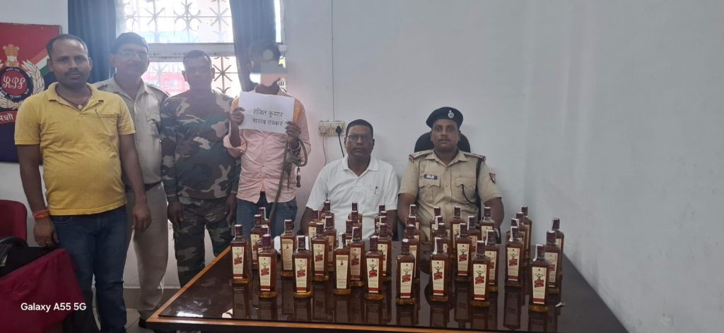 आपरेशन सतर्क: आर.पी. एफ. ने तेतुलमारी स्टेशन पर अंग्रेजी शराब से भरे दो बैग के साथ एक व्यक्ति को पकडा, बिहार जाने के लिए वाराणसी मेमू ट्रेन पर सवार होने आया था तेतुलमारी स्टेशन