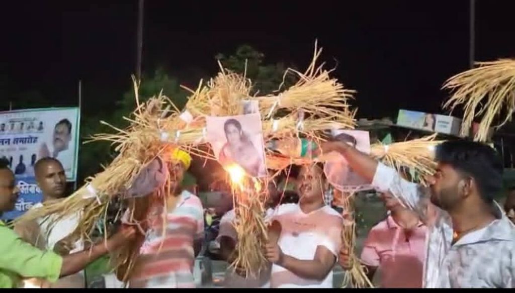 विधायकों की चुप्पी पर कुड़मी समाज का आक्रोश, शक्ति चौक पर किया पुतला दहन