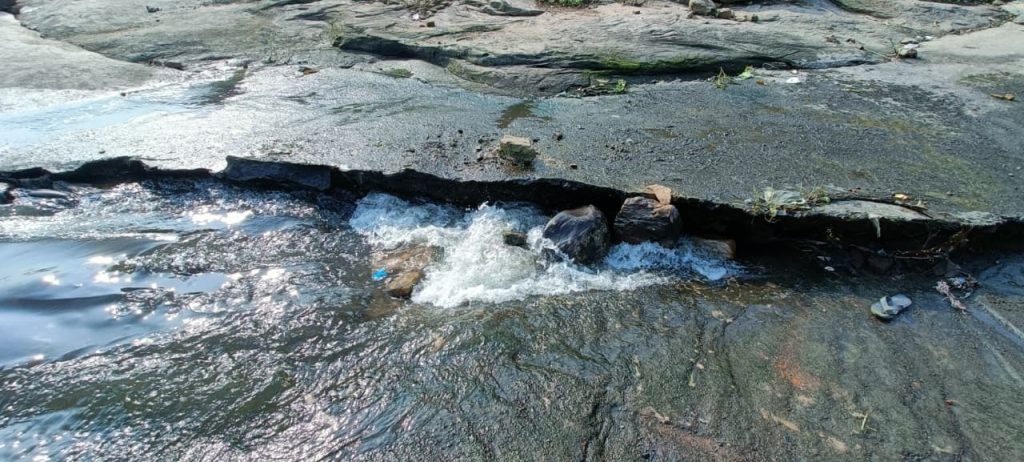 एकड़ा नदी में फटी धरती, भूगर्भ में समाया पानी बहाव, जल स्रोत पर खतरा