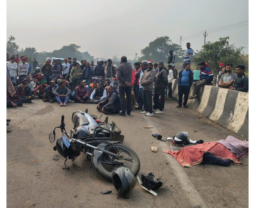 कांको फोरलेन पर बालू लदा ट्रैक्टर ने ली पिता की जान, परीक्षा देने जा रही पुत्री घायल, सड़क जाम